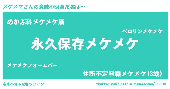 | 男性向けラノベタイトル風あだ名 | 『メケメケという概念が存在しない退屈な世界 』 |