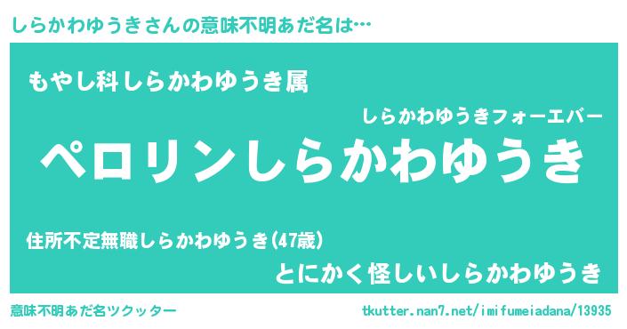 | 胡散臭い通販商品みたいなあだ名 | 『必ず成功する霊験あらたかなお札…その名も「しらかわゆうき」』 |