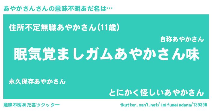 | 欧米人風あだ名 | 『アンジェラ・あやかさん』 |