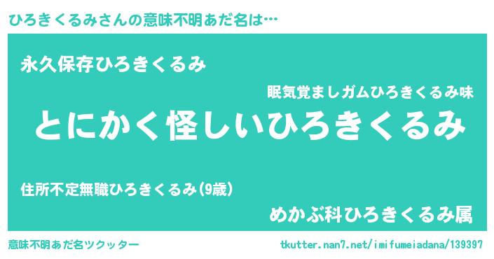 | ヘコむあだ名 | 『ひろぷりん』『ひろきくるみ(震え声)』 |