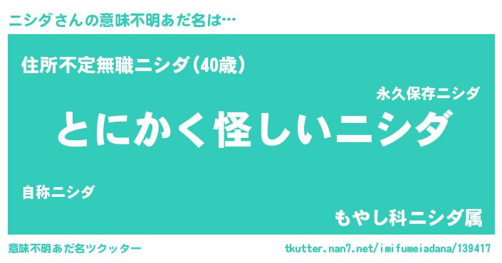 | 料理風あだ名 | 『ニシダの炊き込みご飯』 |