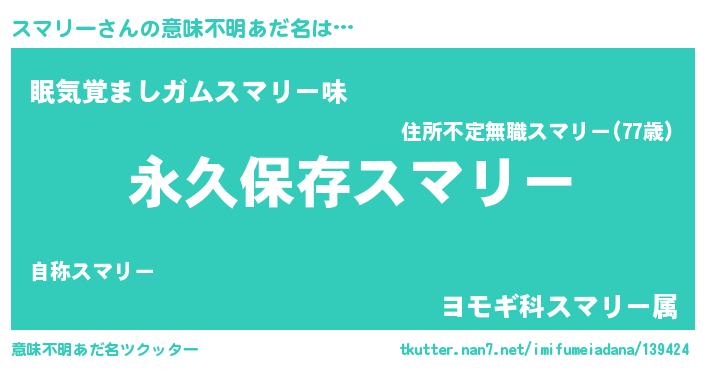 | 男性向けラノベタイトル風あだ名 | 『スマリーという概念が存在しない退屈な世界 』 |