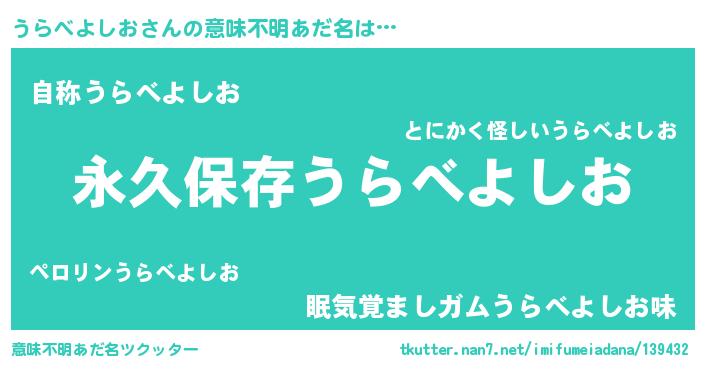 | 胡散臭い通販商品みたいなあだ名 | 『来世でも幸せになれる健康食品…その名も「うらべよしお」』 |