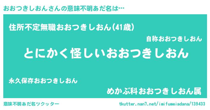 | ポケモン風あだ名 | 『ヒオオツキシオン』『オーオイ』 |