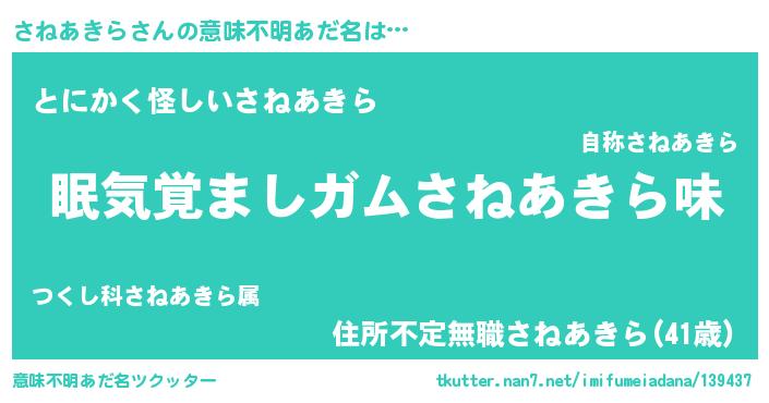 | 男性向けラノベタイトル風あだ名 | 『ノーゲーム・ノーサネアキラ』 |
