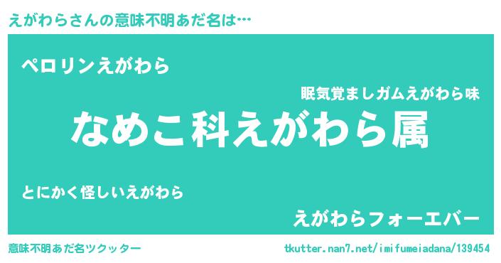 | 料理風あだ名 | 『えがわらごはん』『えがわらのトマト煮』 |