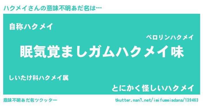 | ヘコむあだ名 | 『ハクを』『ハクもー』『酢こんぶ』 |