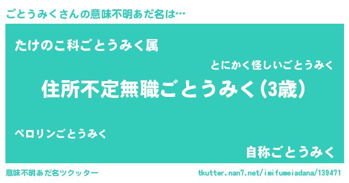 | 男性向けラノベタイトル風あだ名 | 『この素晴らしい世界にごとうみくを!』 |