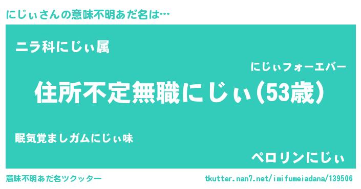 | 男性向けラノベタイトル風あだ名 | 『魔弾の王とにじぃ』『にじぃの憂鬱』 |