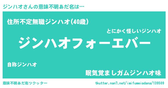 | 欧米人風あだ名 | 『ジンハオクリステル』 |