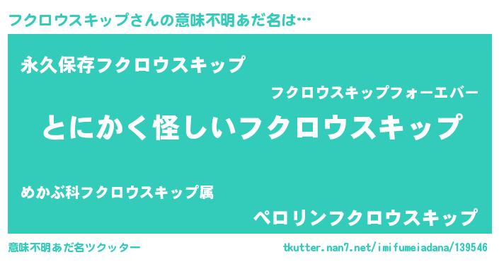 | 男性向けラノベタイトル風あだ名 | 『フクロウスキップの嫁は女の子じゃないと思った?』 |
