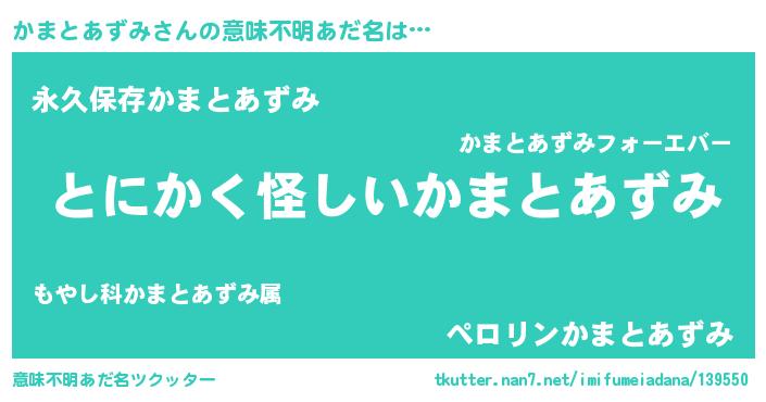 | 胡散臭い通販商品みたいなあだ名 | 『全米が絶賛したサプリメント…その名も「かまとあずみ」』 |