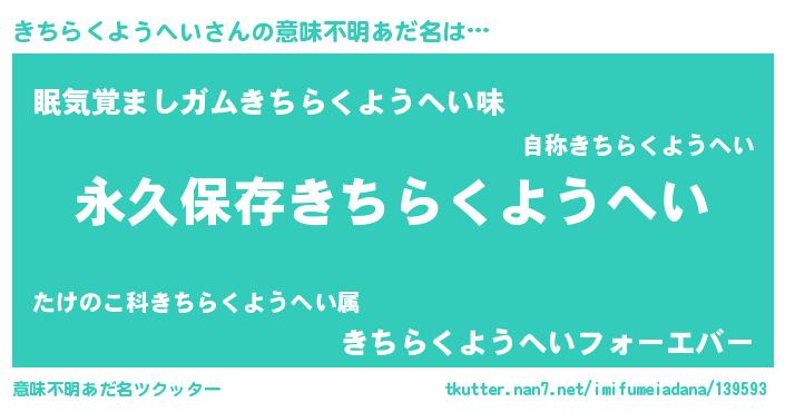 | 胡散臭い通販商品みたいなあだ名 | 『絶対に幸福をもたらす健康食品…その名も「きちらくようへい」』 |