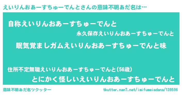 | 欧米人風あだ名 | 『ダニエルえいりんおあーすちゅーでんと』 |
