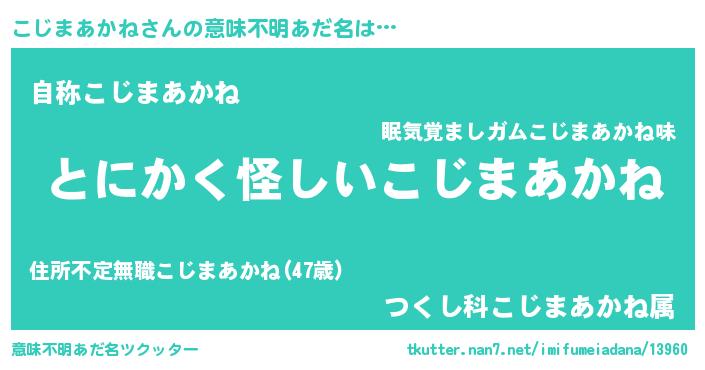 | 胡散臭い通販商品みたいなあだ名 | 『伝統あるサプリメント…その名も「こじまあかね」』 |