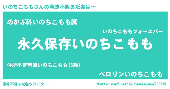 | 男性向けラノベタイトル風あだ名 | 『いのちこももという概念が存在しない退屈な世界 』 |