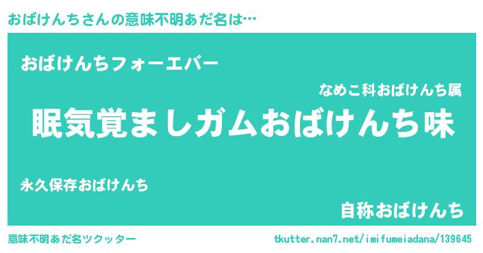 | 男性向けラノベタイトル風あだ名 | 『ノーゲーム・ノーオバケンチ』 |