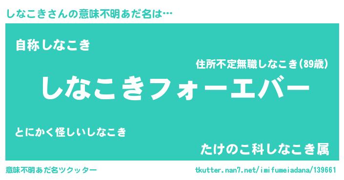 | ヒーロー風カッコイイあだ名 | 『ウルトラしなこきマン』『仮面シナダー』 |