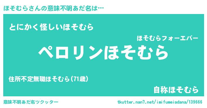 | 男性向けラノベタイトル風あだ名 | 『ほそむらの憂鬱』『魔弾の王とほそむら』 |