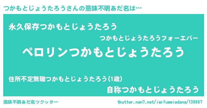 | 男性向けラノベタイトル風あだ名 | 『つかもとじょうたろうに滅ぼされるだけの簡単なお仕事です』 |
