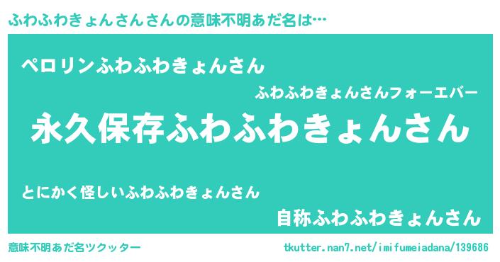 | 胡散臭い通販商品みたいなあだ名 | 『来世でも幸せになれる水素水…その名も「ふわふわきょんさん」』 |