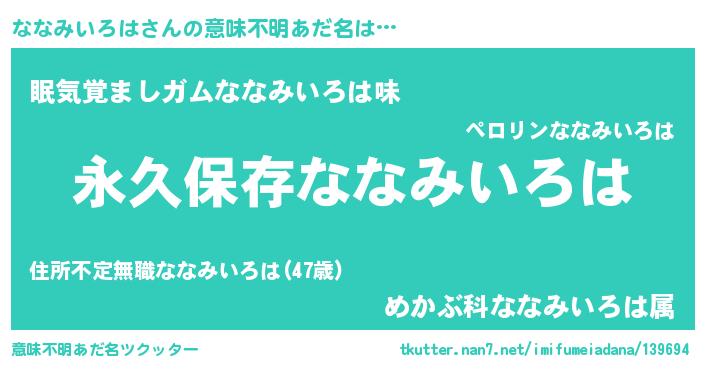 | 男性向けラノベタイトル風あだ名 | 『ななみいろはという概念が存在しない退屈な世界 』 |