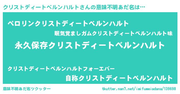 | 胡散臭い通販商品みたいなあだ名 | 『来世でも幸せになれる水素水…その名も「クリストディートベルンハルト」』 |