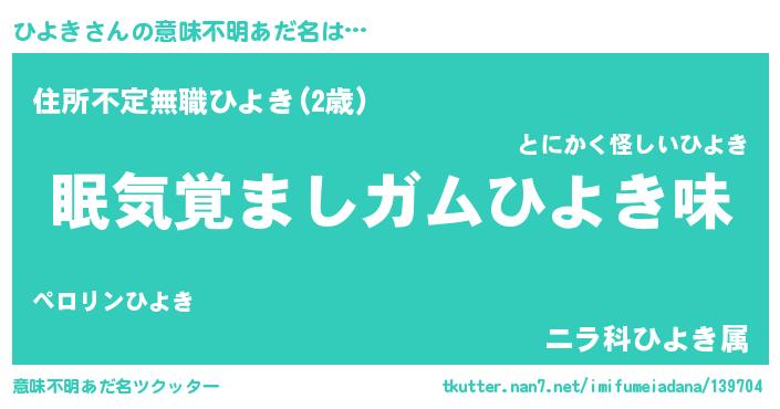| 料理風あだ名 | 『ひよきのトマト煮』『ひよきごはん』 |