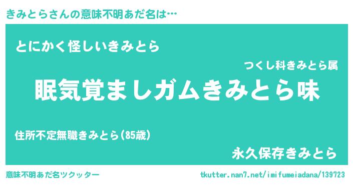 | 女子向けラノベタイトル風あだ名 | 『きみとら恋絵巻』『きみとら様がみてる』 |