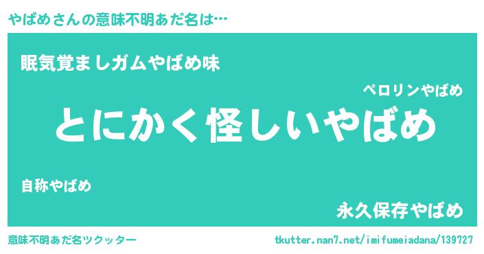 | ヒーロー風カッコイイあだ名 | 『炎刃騎士ヤバ』『友情の使者やばめ』 |