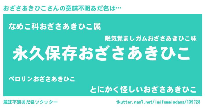 | 胡散臭い通販商品みたいなあだ名 | 『絶対に幸福をもたらす水素水…その名も「おざさあきひこ」』 |