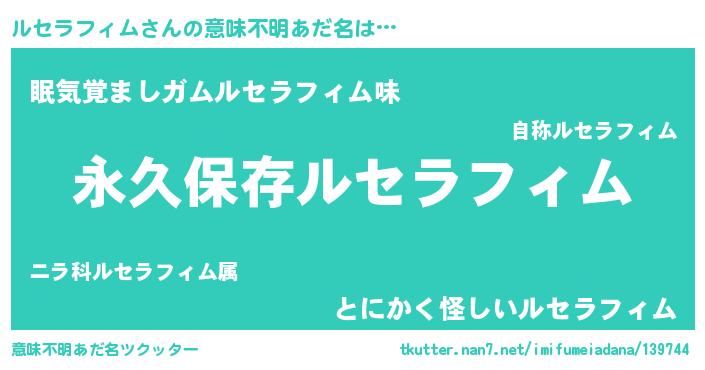 | 男性向けラノベタイトル風あだ名 | 『ルセラフィムに滅ぼされるだけの簡単なお仕事です』 |