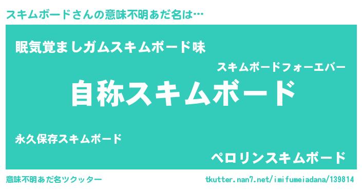 | 女子向けラノベタイトル風あだ名 | 『スキムボードアンティーク』 |