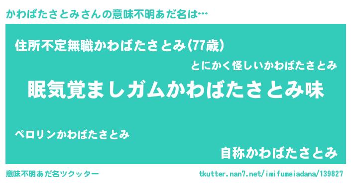 | ヒーロー風カッコイイあだ名 | 『慈愛の使者かわばたさとみ』 |