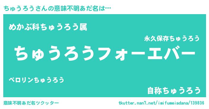| 欧米人風あだ名 | 『ちゅうろうクリステル』 |