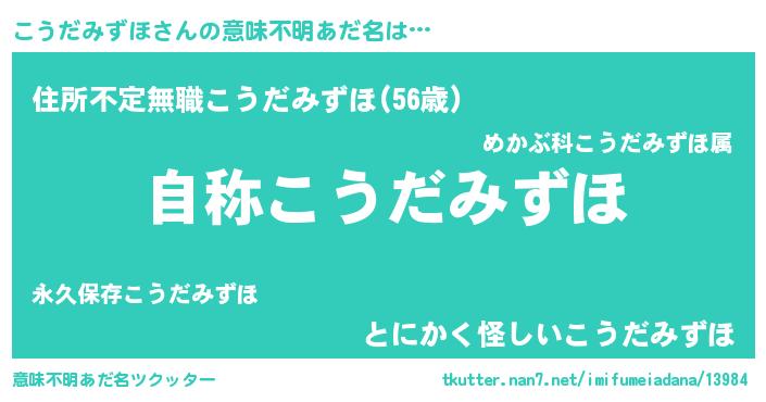 | 女子向けラノベタイトル風あだ名 | 『こうだみずほなんてお断りですっ。』 |