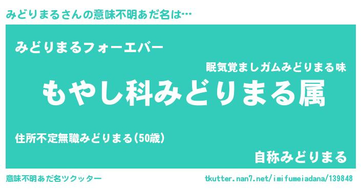 | 男性向けラノベタイトル風あだ名 | 『転生したらみどりまるだった件』 |