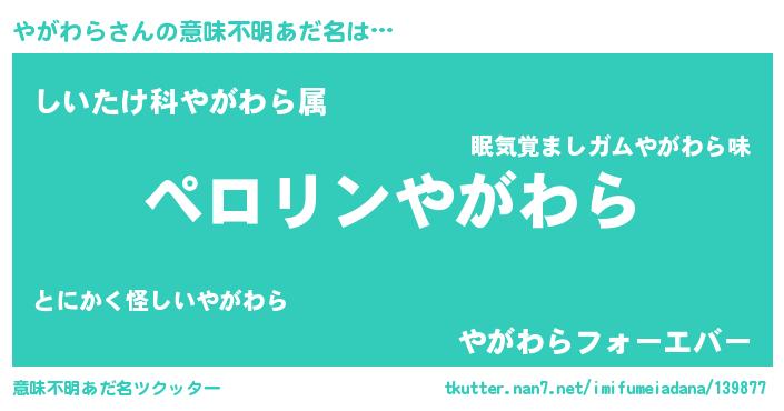 | 男性向けラノベタイトル風あだ名 | 『やがわらの憂鬱』『緋弾のヤガワラ』 |