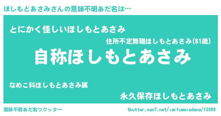 | 肩書あだ名 | 『ほしもとあさみ閣下』 |