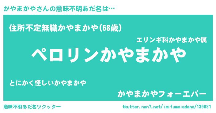 | 男性向けラノベタイトル風あだ名 | 『カヤマカヤアートオンライン』 |