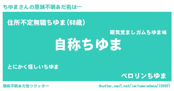 | 欧米人風あだ名 | 『ケンブリッジちゆま』『マイケルちゆま』 |