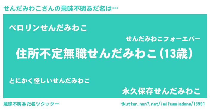 | ヒーロー風カッコイイあだ名 | 『仮面センダー』『スーパーセンダミワコ』 |