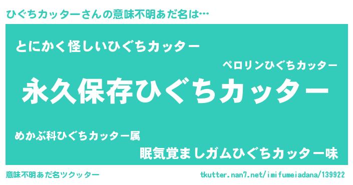 | 伝説のあだ名 | 『古文書に記された勇者ひぐちカッター』 |