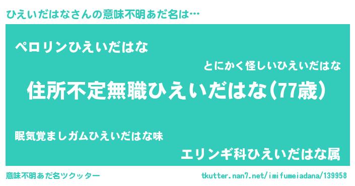 | 欧米人風あだ名 | 『アンジェラ・ひえいだはな』 |