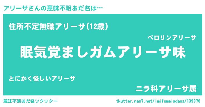 | ヒーロー風カッコイイあだ名 | 『天空の使者アリーサ』『仮面アリダー』 |