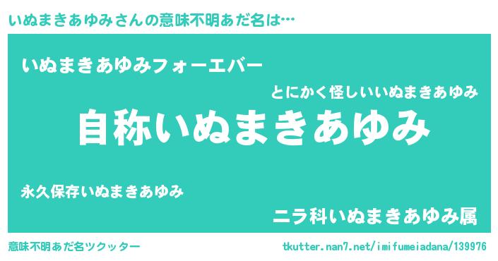| 肩書あだ名 | 『いぬまきあゆみ総統』 |