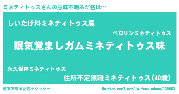 | ヒーロー風カッコイイあだ名 | 『正義の使者ミネティトゥス』 |