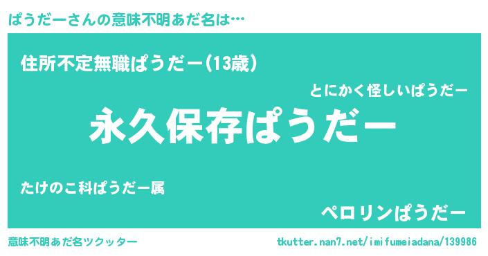 | ヘコむあだ名 | 『ぱうだー(笑)』『ぱうふぇ~』 |