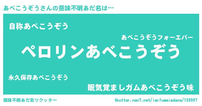 | ヒーロー風カッコイイあだ名 | 『スーパーアベコウゾウ』 |