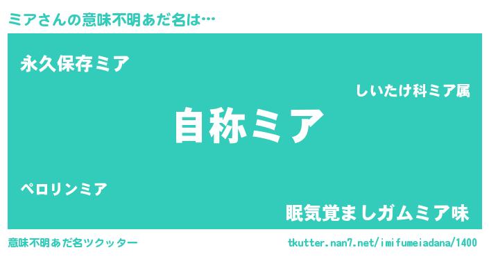 | ファンタジー風あだ名 | 『ゼミアトゥ』『ミアディッシュ』 |